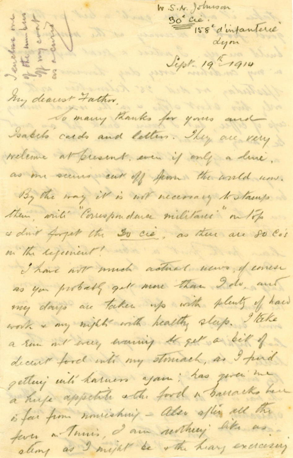 Letter to Father 19th September 1914